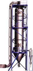 ◆ 压力式喷雾干燥造粒机是采用压力式雾化器借助隔膜泵的压力将溶液或浆状的物料雾化咸细微液滴,使表面积显著增大。经与热风进行充分热交换得以快速干燥(十几秒至几十秒),从而得到粉体或细小颗粒产品的设备。